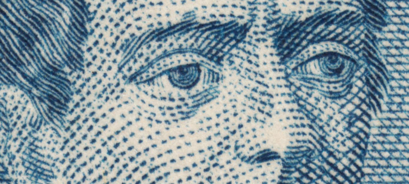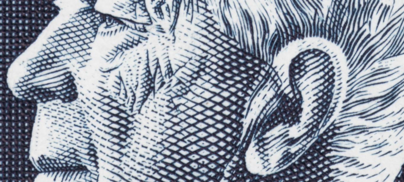 Todo esto viene a cuento por estos sellos que ocupan esta entrada, en especial los dos primeros. Son unos sellos muy pequeños de tamaño, repetimos, y unos retratos sublimes, tanto en la acendrada concepción artística como en la prodigiosa ejecución técnica. Grabados muy celosos y pulcros de Slania, que apura el espacio concedido con un rigor y una serenidad inapelables. ¡Perfectos!