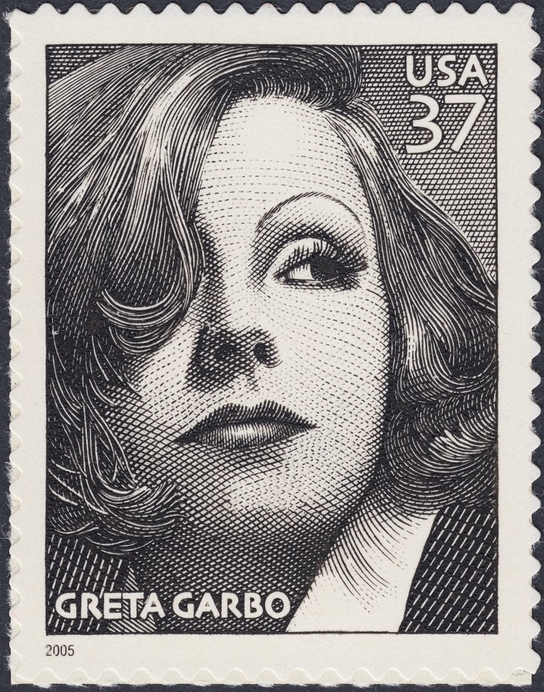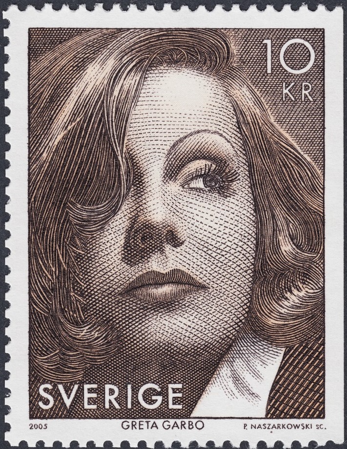 La imagen que anteponemos a la emisión americana de este retrato de Greta Garbo (Estados Unidos, 2005), emitido conjuntamente con Suecia (2005, en color *), tal vez no sea más que un eslogan publicitario, similar a los que hizo Correos España en unos folletos informativos hace años para emisiones similares, pero es evidente que, a efectos prácticos y estéticos, nos sirve de trampolín artístico ideal para una suposición tan ineludible como, en este caso y a Dios gracias, deliciosa. Apuntar, además, que al parecer Slania, predestinado a grabar este retrato filatélico hoy ya mítico, llegó a tomar algunas decisiones en cuanto al diseño, que parte finalmente de una fotografía de la actriz a cargo de Clarence Sinclair Bull.