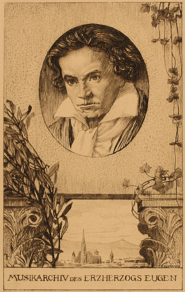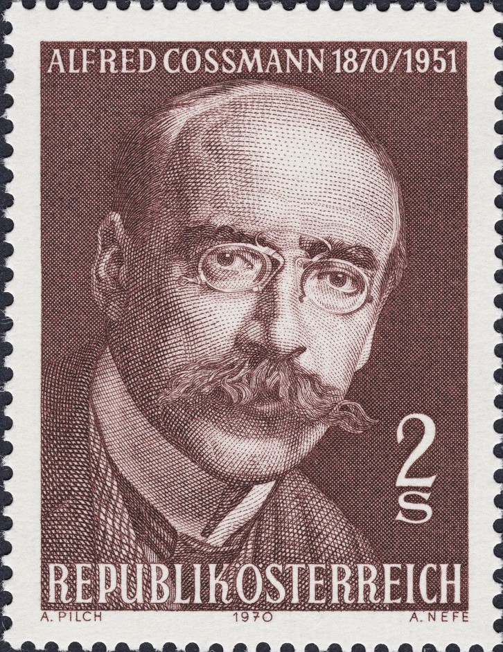 El grabador que graba a otro grabador, una vez más. En este caso, Alfred Nefe talla a Alfred Cossmann, grabador austríaco de prestigio, especialmente en la confección de exlibris. Aportamos, detrás del sello emitido por Austria en 1970, tres exlibris de Cossmann de otras tantas personalidades de las que hemos puesto sellos excepcionales en estas páginas, en dos de los casos, incluso, partiendo de imágenes similares (*): los compositores Beethoven, Schubert y Brahms.