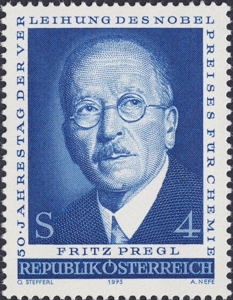Dos escisiones más de Alfred Nefe. Sobre estas líneas, el político Ferdinand Hanusch, y por debajo de estos párrafos, el químico Fritz Pregl. Sellos emitidos por Austria en 1973, y los dos con diseño a cargo del también magnífico dibujante y grabador Otto Stefferl.
