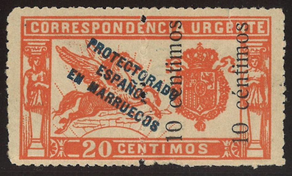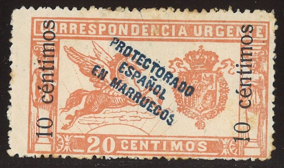 El sello urgente se sobrecargó primero, en la Delegación de Fomento, con 10 Cts. (horizontal), pero al ver que no destacaba bastante, se añadió, en la imprenta de "La Papelera Africana", la habilitación vertical a los pliegos ya impresos. Al resto de la tirada se la aplicó la habilitación vertical.[hr]