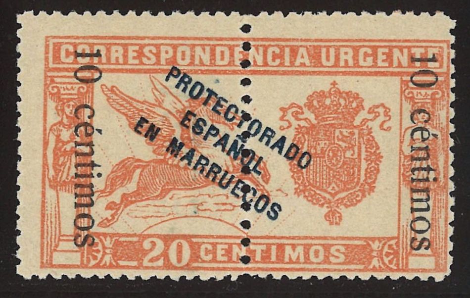 - 10 s/ 20 cts. del urgente con la sobrecarga "10 Cts." (horizontal) y la vertical, 5.100 (pliegos A.000,226 y A.000,231 al A.000,280) - 10 s/ 20 cts. del urgente con sólo la sobrecarga vertical, 28.100 (pliegos A.000,120 al A.000,200 y A.000,281 al A.000,400)