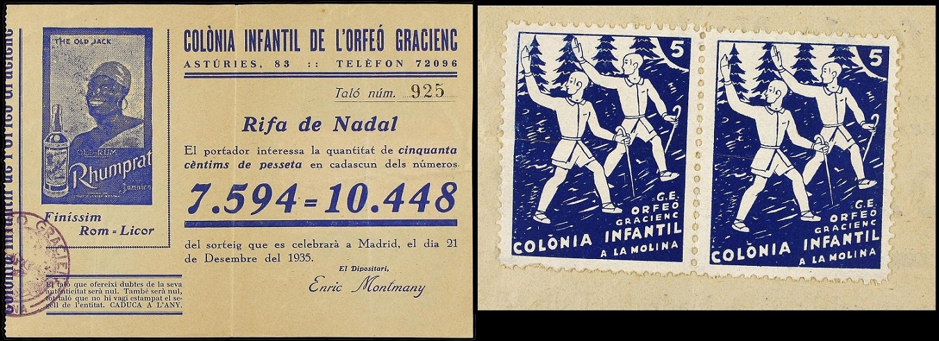 Estas las podemos datar en torno a 1935, al aparecer en el reverso de esta papeleta de lotería.jotaele3 escribió:La del Orfeó Gracienc en excursión a la Molina tiene al menos una compañía.