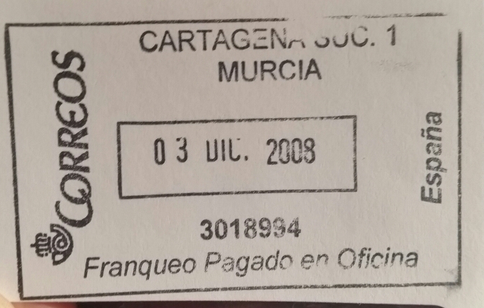 FPO AF-103 CARTAGENA SUC.1 / MURCIA / 03-12-2008 / 3018994