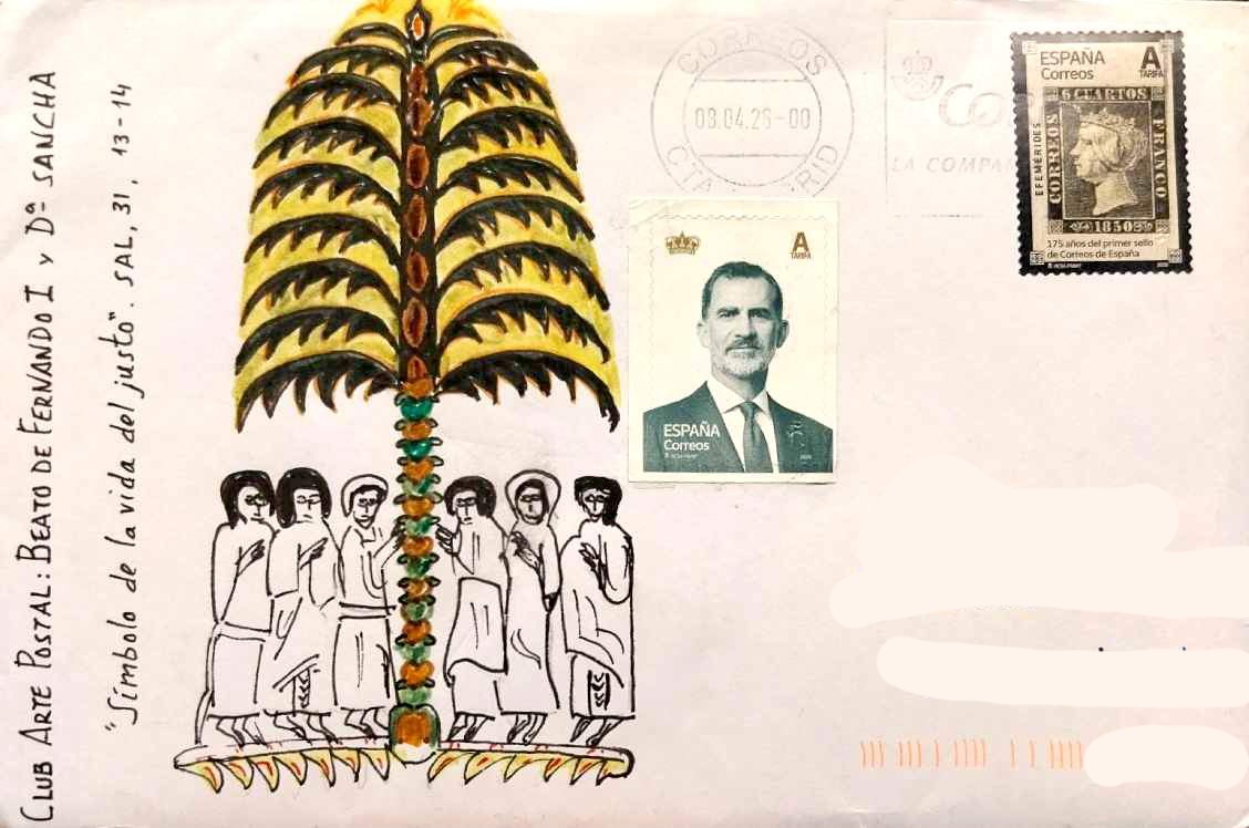 en el sobre original que yo te envié lo que aparecía en ese mismo lugar era el sello de 12 pta. (bueno, una réplica) de la serie Codices/Beatos de 1975. Podemos verlo aquí abajo, porque me quedé con la foto antes de enviártela: