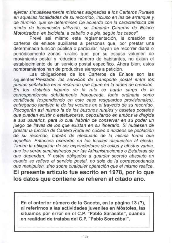 El artículo, al que hago referencia, escrito en el año 1978, fue publicado en el número 27 de la revista "La Gaceta Filatélica del Centro. Madrid-Castilla La Mancha", correspondiente al febrero del año 1995.