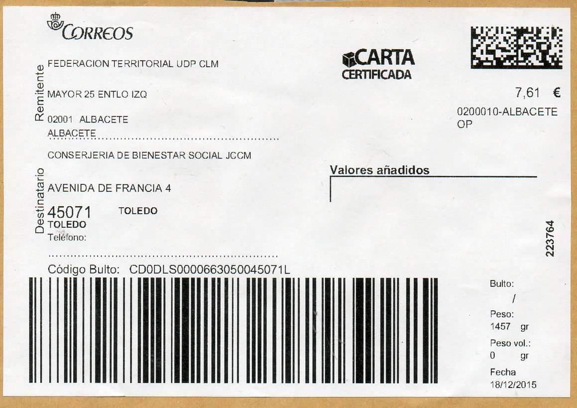 0200010-ALBACETE OP / CARTA CERTIFICADA / 18/12/15.