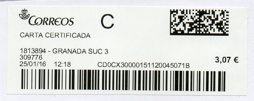 1813894-GRANADA SUC 3 / CARTA CERTIFICADA / 25/01/16