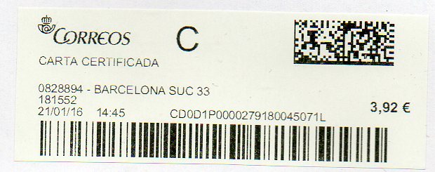 0828894-BARCELONA SUC 33 / CARTA CERTIFICADA / 21/01/16.