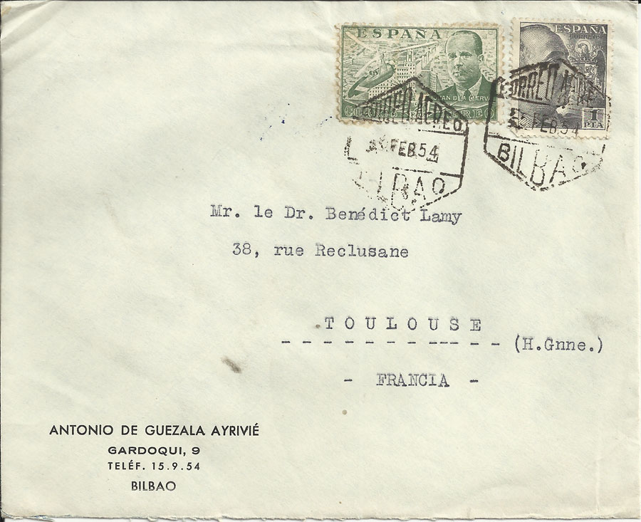 carta remitida por el pintor y gran Filatelista Antonio de Guezala Ayrivié