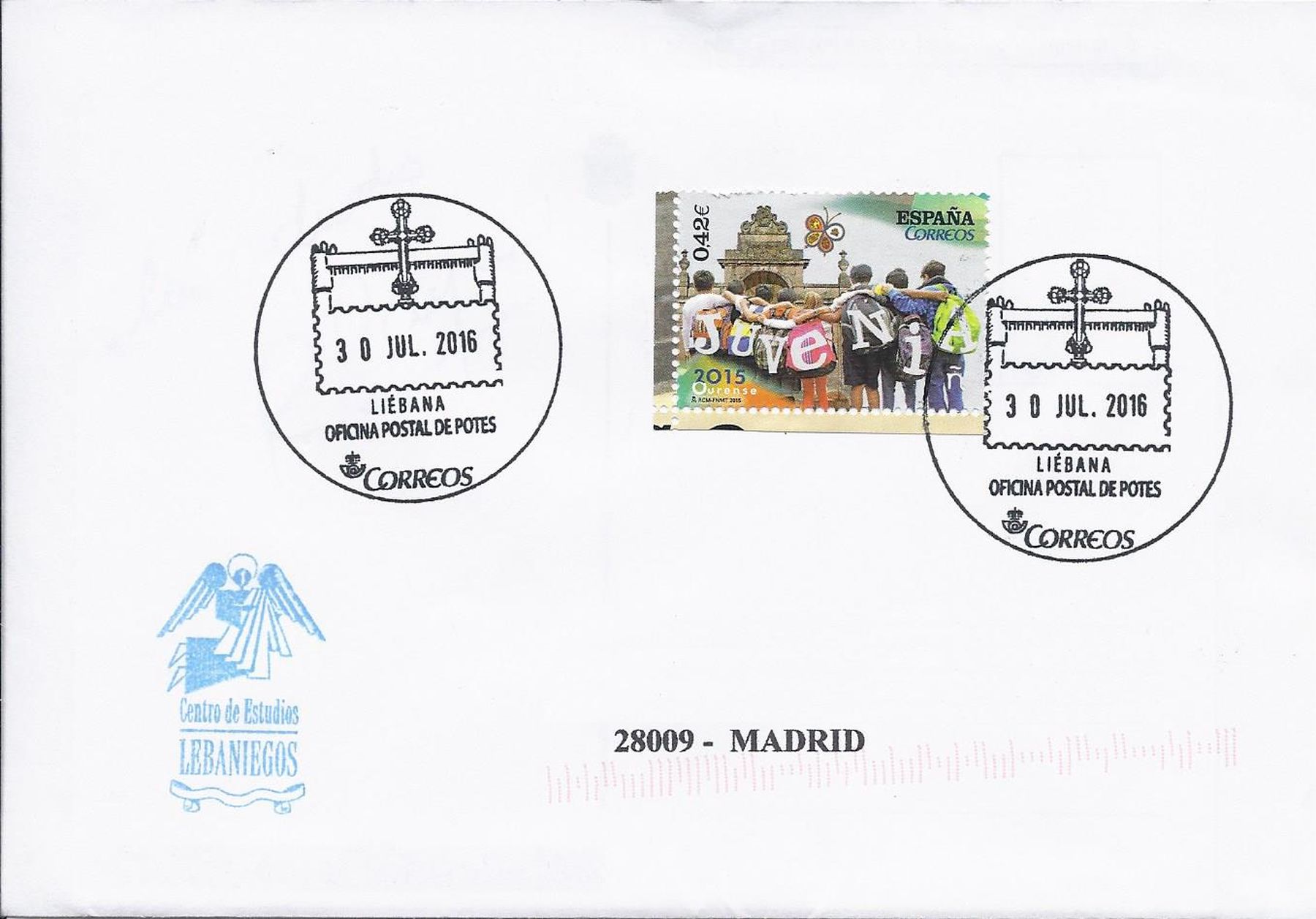 Ahora muestro la prueba de su paso por POTES con el matasellos dedicado a Liébana con fecha del pasado 30 de julio.
