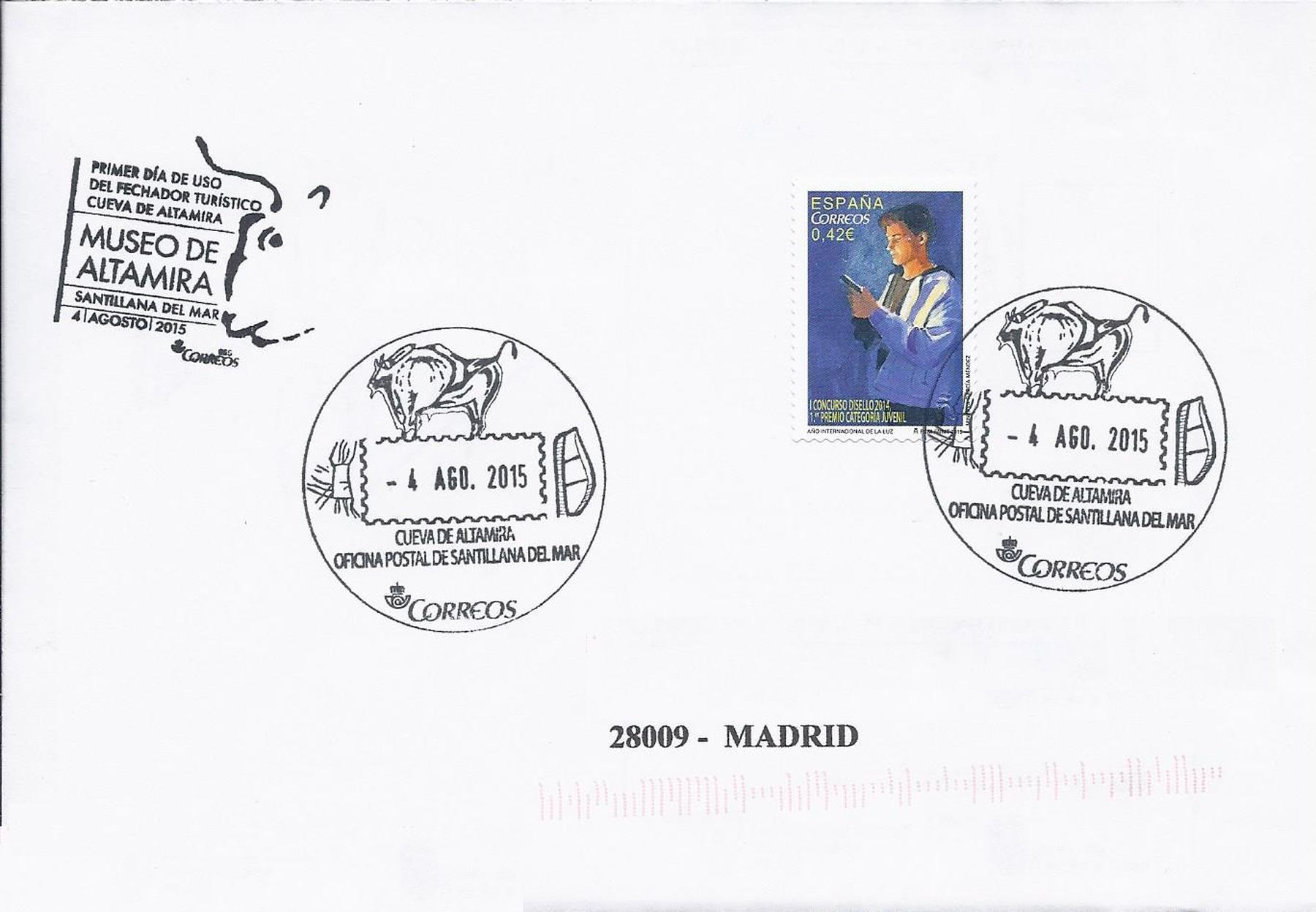 Se da la feliz circunstancia de que también figura en el sobre el matasellos conmemorativo del Primer Día de Uso del Fechador Turístico Cueva de Altamira (lo reproduzco en el hilo Matasellos 2015).