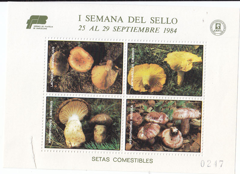 No se si esta viñeta de setas del gremio de filatelia de Barcelona puede serviros para la catalogación...