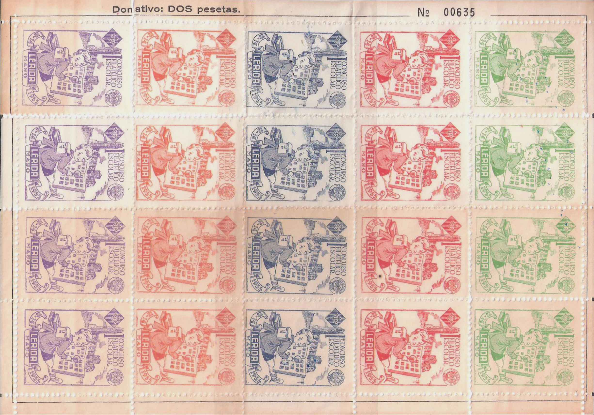 De las anteriores del I Concurso Filatélico Escolar, tengo un pliego completo que no quería subir porque está un poco estropeado,,, después he pensado que por lo menos sabremos como es y ya se mejorará.