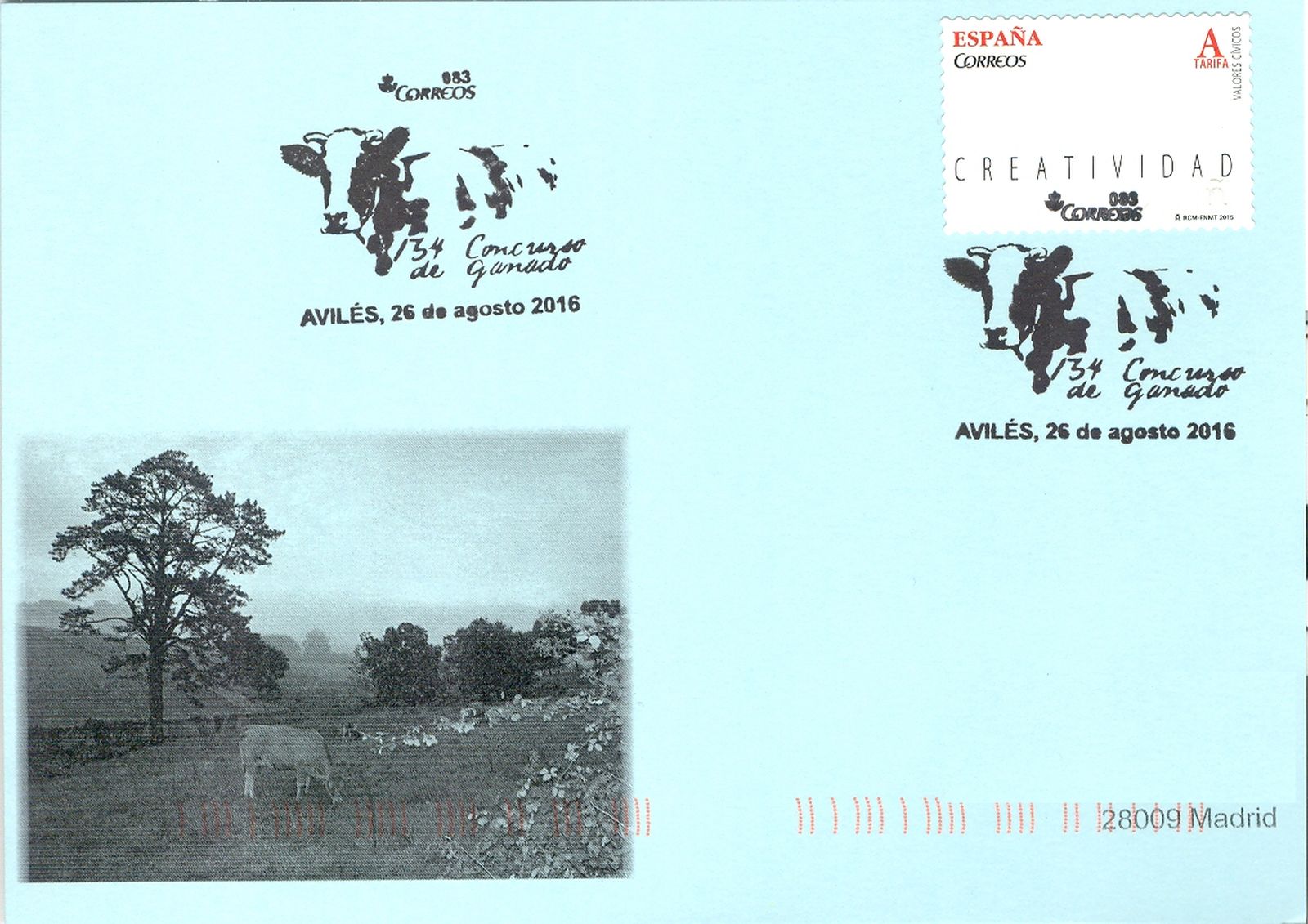 La décimo sexta de ellas del año 2016 (15/2016, ya que existe una 12a) hace referencia al matasellos, utilizado en Avilés, conmemorando el 134 Certamen de Ganado, celebrado en el Pabellón de La Magdalena del 25 al 28 de agosto del año 2016.
