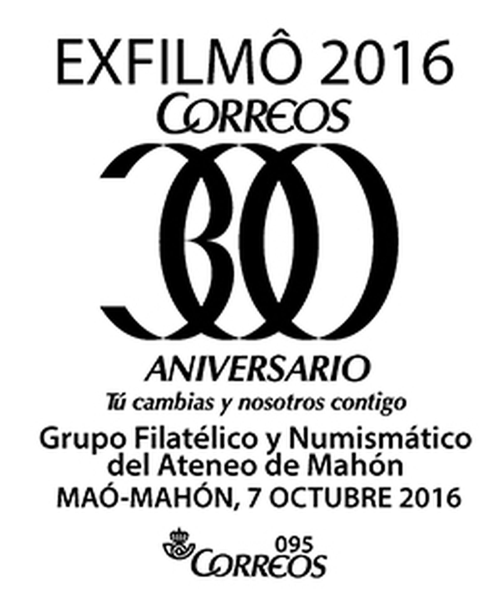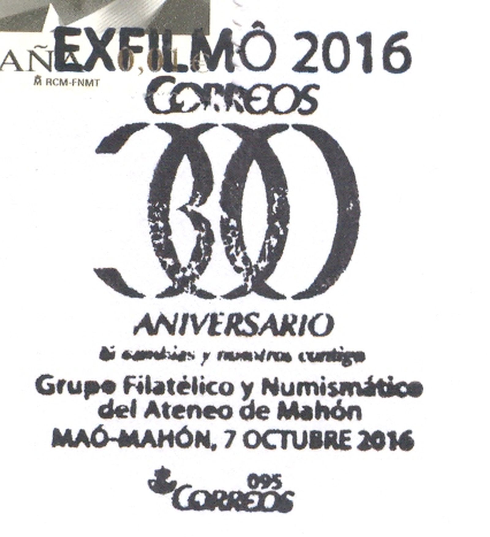 Mao (Mahon). 2016-10-07 al 12. Exfilmo 2016. Matasellos. 300 Aniversario de Correos. Baja.jpg