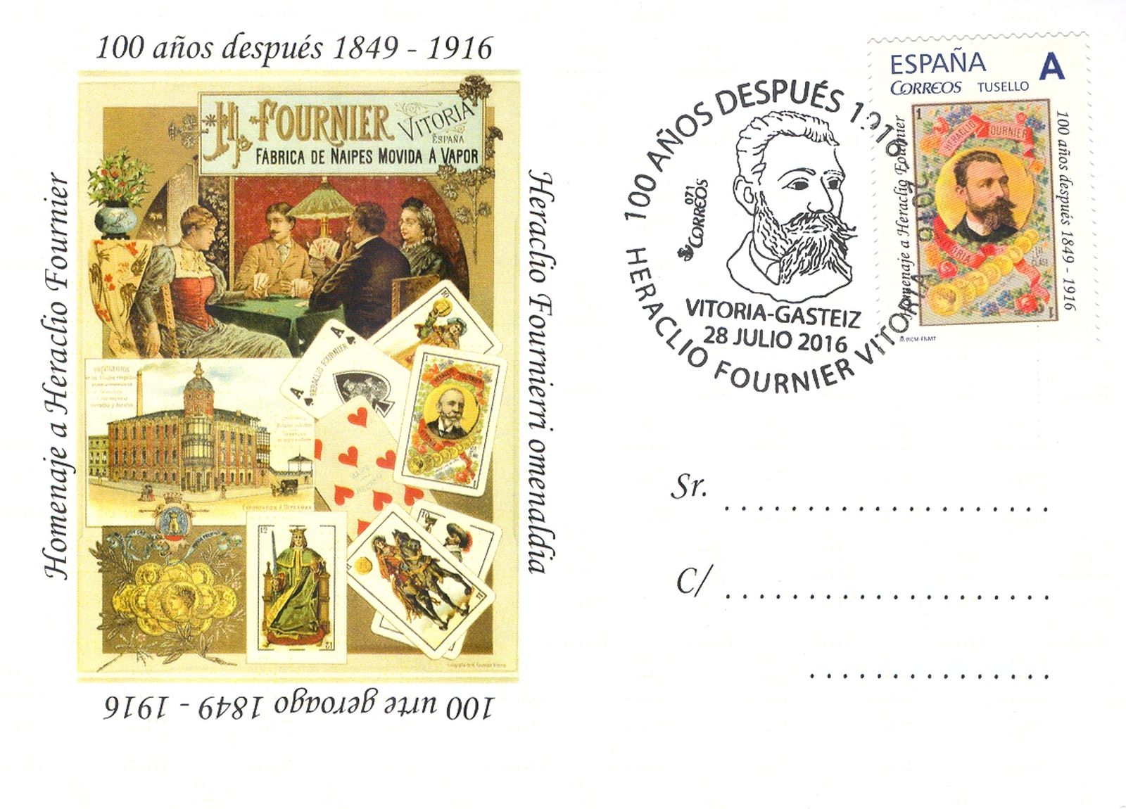 La Asociación Filatélica Alavesa, dentro de los actos que se desarrollaron en Vitoria-Gasteiz en homenaje a Herclio Fournier, para commemorar el centenario de su fallecimiento, solicitó la concesión de un matasellos conmemorativo y editó un tarjeta postal que sirviese como soporte del mismo y a la que pudiesen adherirse dos sellos personalizados que también editó.