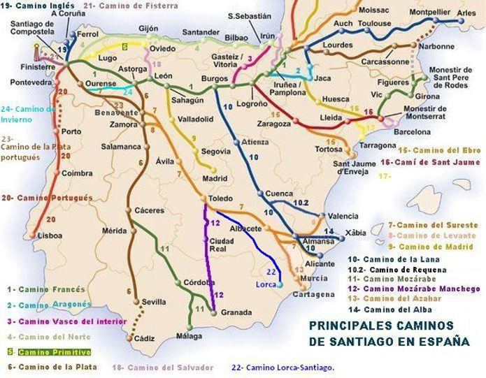 Si no, vean este mapa de los Caminos de Santiago en España: