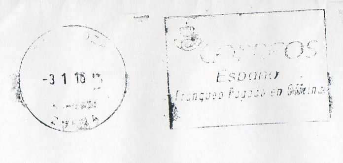 Antonio, te recomiendo que antes de colgar imágenes te des una vuelta por los hilos. A mi me lo recomendaron en su día, y me ha ido bastante bien. Ya sé que es un rollo...que son muchas páginas...pero vale la pena. Yo aprendo subiendo lo que me cae y mis compañeros me han corregido muuuuuuchas vecesautrerafunez escribió:Traigo algunos Franqueos Pagados en la Oficina que difieren de los que habitualmente se utilizan y que vienen recogiéndose en este apartado.