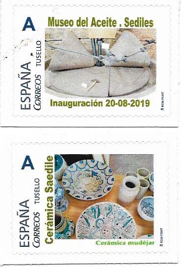 Aprovecho para presentar los dos sellos emitidos en Sediles para conmemorar la inauguración de su Museo del Aceite y el taller de cerámica que se ubica en su interior.