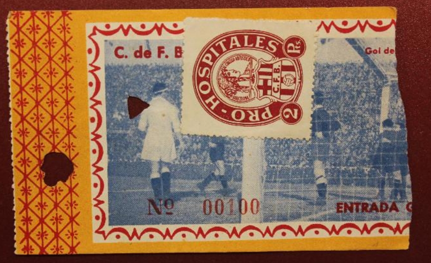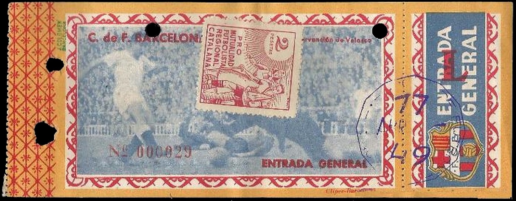 Subo ahora una viñeta benéfica que esta adherida en un frontal de una entrada de FC Barcelona de la liga 1948-49,,, no la conocía,,,