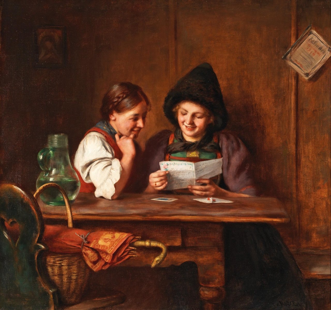 Todavía recordamos el maravilloso lienzo del artista vienés Ferdinand Georg Waldmüller que hace unas páginas presentamos, Carta de amor (1849, viewtopic.php?f=15&t=14029&p=404460&hil ... 49#p404460). Este de ahora no le va a la zaga.