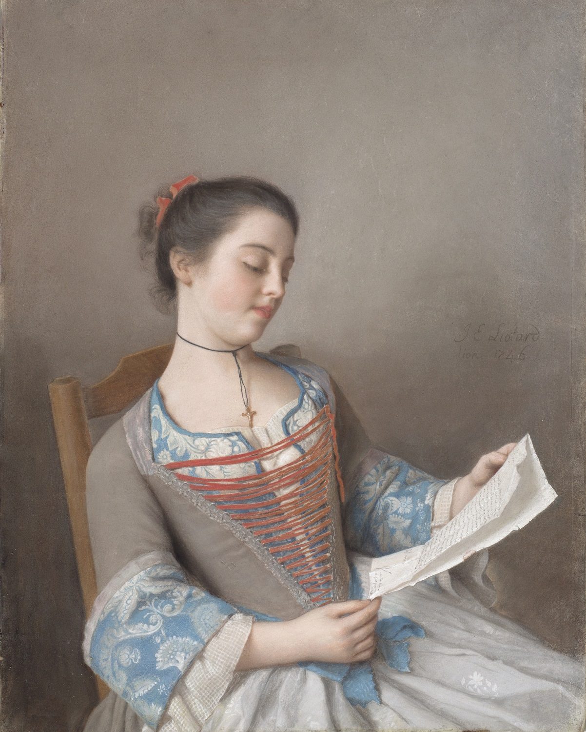 "La liseuse" (La bella lectora), 1746. Pastel sobre pergamino, 54.5 × 43 cm