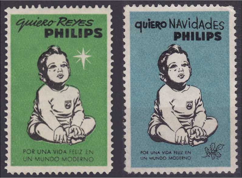 Aprovecho y subo unas viñetas de Philips con motivos de Navidad que no se a que año pertenecen aunque tengo unas imagen de la verde circulada y matasellada en 1962.