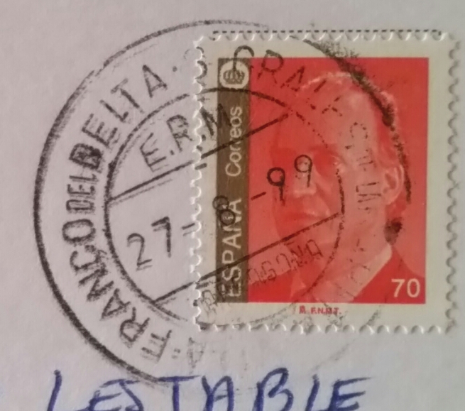 Resulta que encontré esta postal con un matasellos de un E.R.M. poco legible, que finalmente pude "descifrar": VILA-FRANCO DEL DELTA-S. CRALES DE LA RAPITA / 27-8-99 / TARRAGONA....