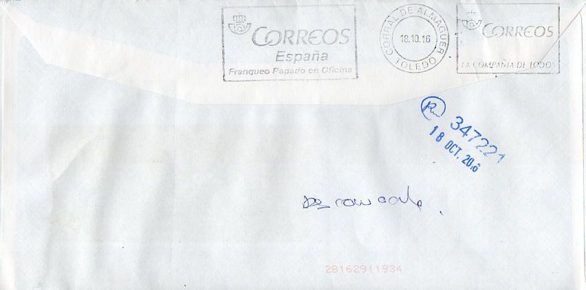 R/ emite / plaza / C/ H P del Pulgar nº 2 5º D / CReal 13601 (El CP de esa calle ciudadrealeña es en realidad el 13001).