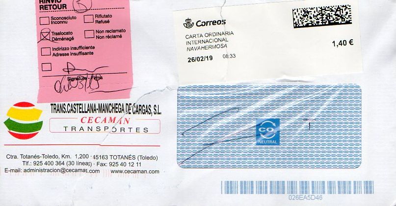 Bonito correo devuelto con la marca CADUCADO / ESTUVO EN LISTA