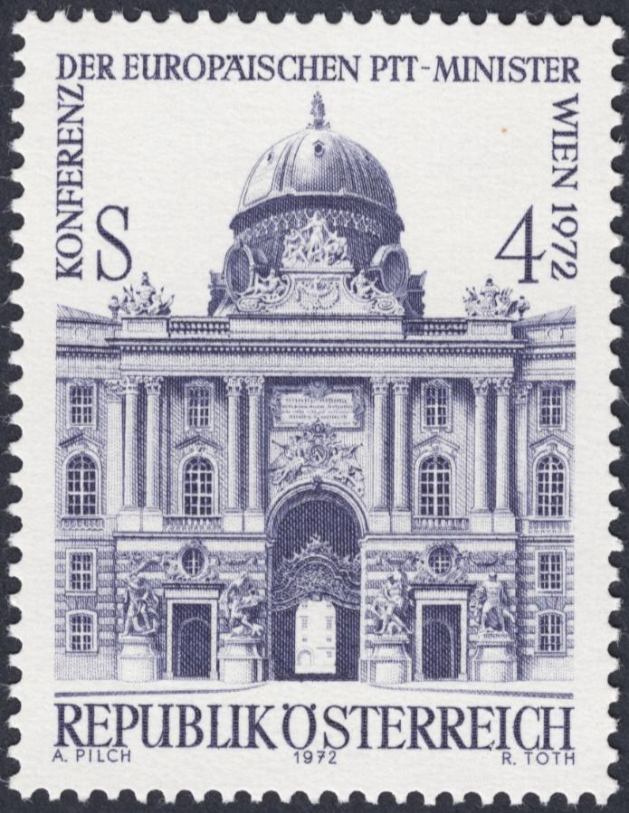 No sólo no nos hemos repuesto del efecto Toth, sino que hoy estamos aún peor que ayer. Aún no hemos mostrado un sello de Toth en el que el protagonista sea un edificio. Pues bien: necesitamos dos entradas para analizar esta obra de arte que vais a ver, el Palacio Imperial de Hofburg. Os recuerdo amablemente que no dejéis de pinchar cada imagen para quintuplicar su tamaño.
