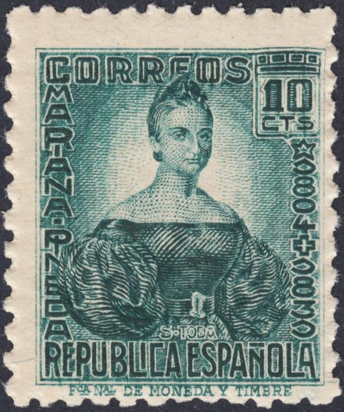 Es un buen momento para volver a convocar a nuestro gran Sánchez Toda, cuya maestría no desentona en absoluto con la de estos dos gigantes que tanto deleite nos están dando. Retrato de Mariana Pineda, uno de sus grandes sellos republicanos: