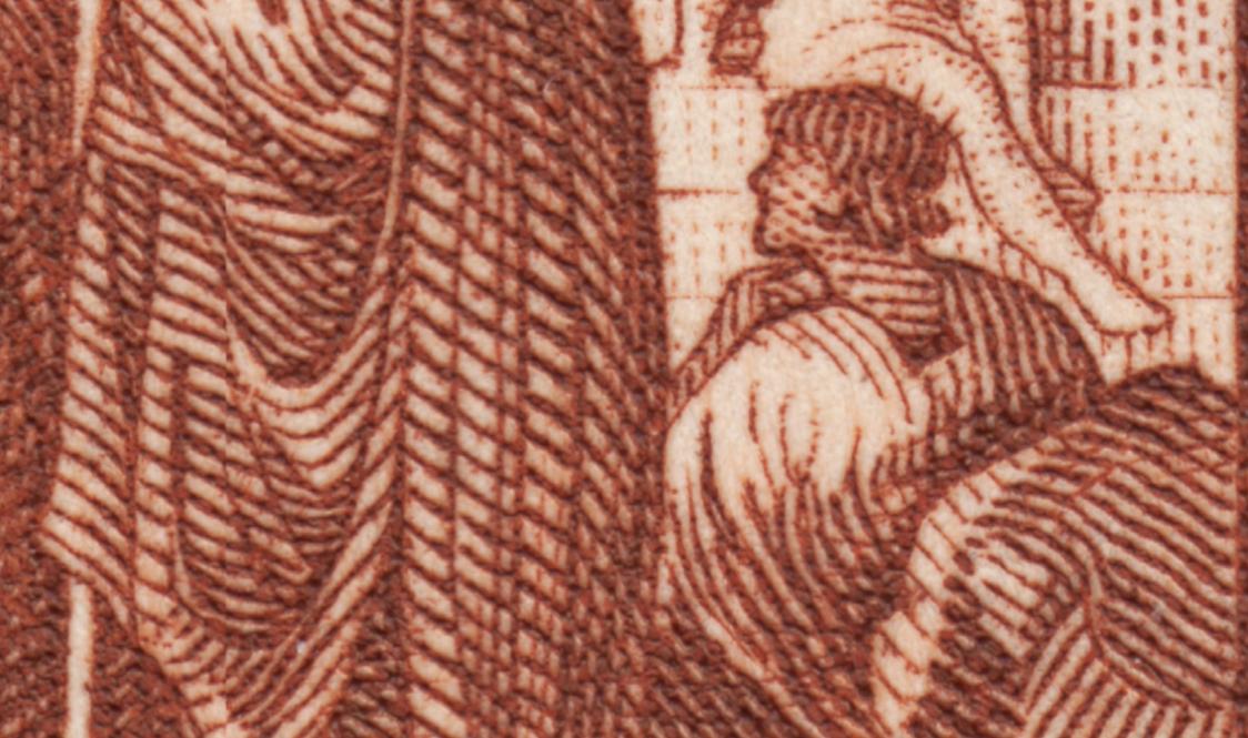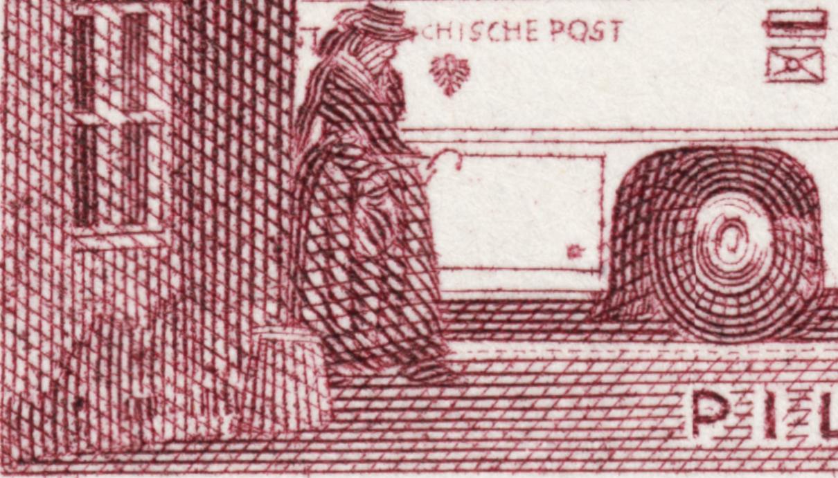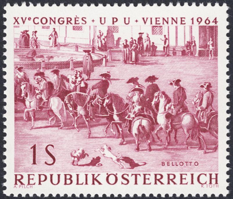 Por lo que he podido investigar por la red, el diseñador de muchos de los sellos grabados por Toth, Adalbert Pilch, también grabador e ilustrador (http://apilch.de/ap_frames.htm), trabajó mano a mano con aquél en dos de los sellos de esta serie magistral de la UPU. Este es uno de ellos: