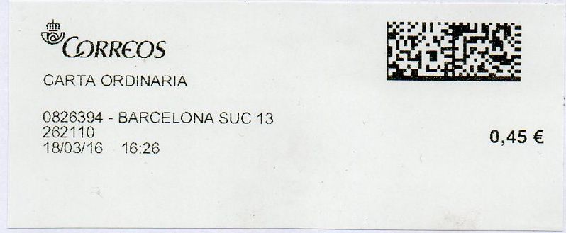 0826394-BARCELONA SUC 13 / CARTA ORDINARIA / 18-03-16.
