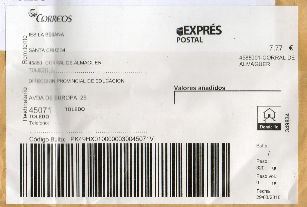 45880001-CORRAL DE ALMAGUER / EXPRES POSTAL / 29-03-16.