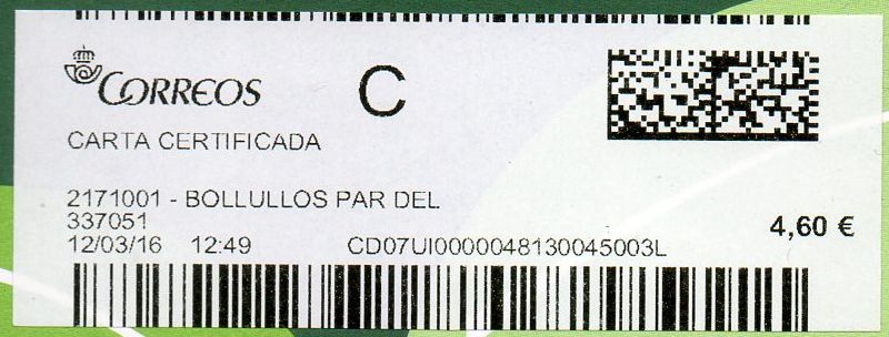 2171001-BOLLULLOS PAR DEL / CARTA CERTIFICADA / 12-03-16.