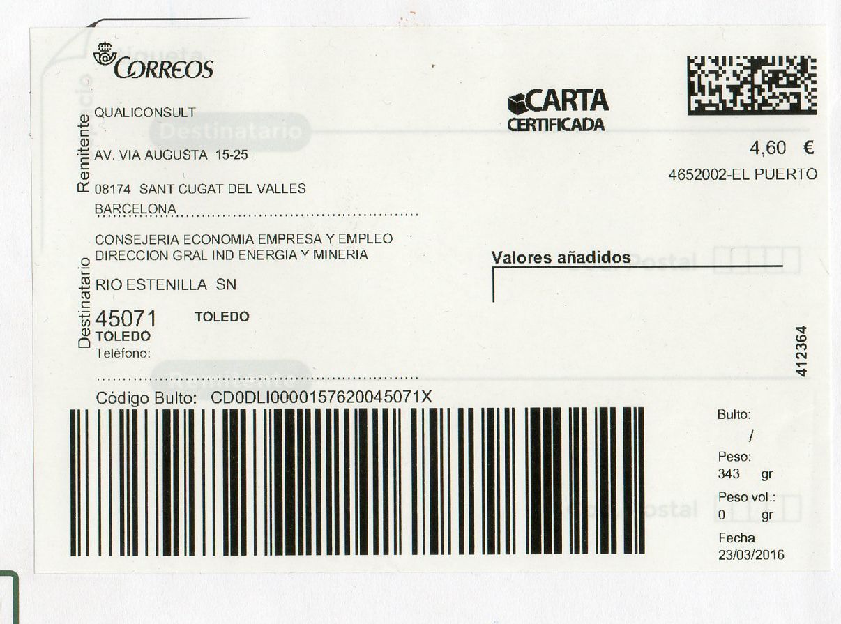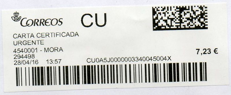 2887894-TORREJON DE ARDOZ SUC 2 / CARTA CERTIFICADA / 03-05-16.