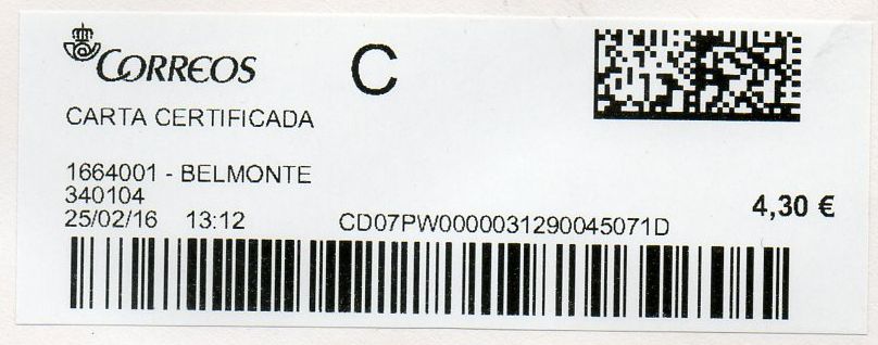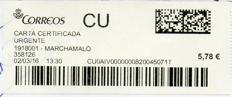 1918001-MARCHAMALO / CARTA CERTIFICADA URGENTE / 02-03-16.