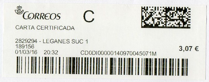 2829294-LEGANES SUC 1 / CARTA CERTIFICADA / 01-03-16.