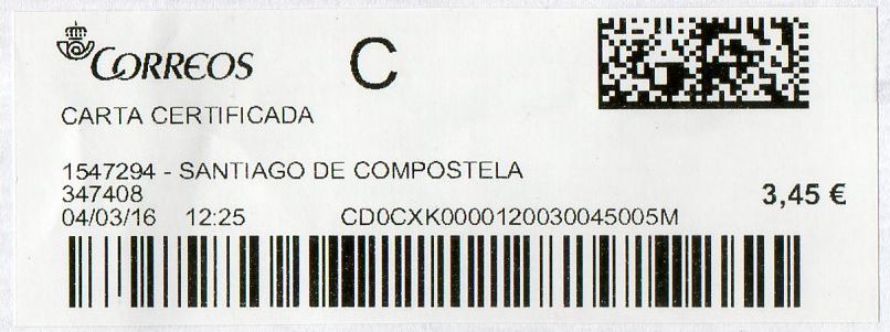 1547294-SANTIAGO DE COMPOSTELA / CARTA CERTIFICADA / 04-03-16.