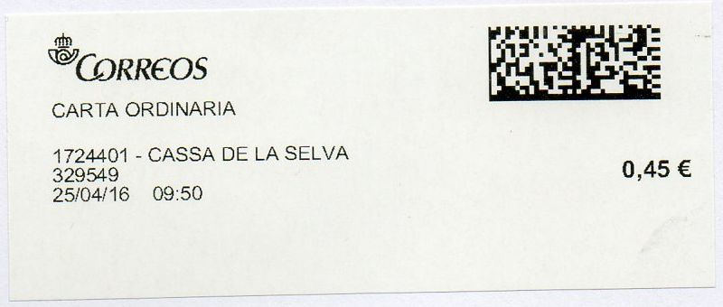 1724401-CASSA DE LA SELVA / CARTA ORDINARIA / 25-04-16.
