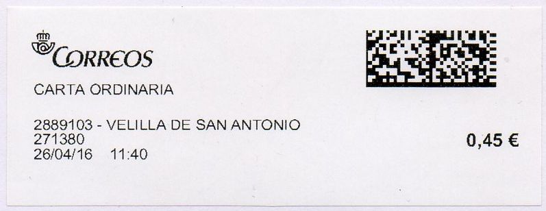 2889103-VELILLA DE SAN ANTONIO / CARTA ORDINARIA / 26-04-16.