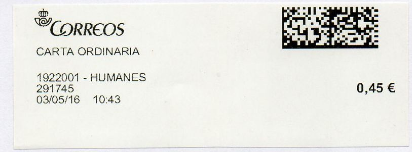1922001-HUMANES / CARTA ORDINARIA / 03-05-16.
