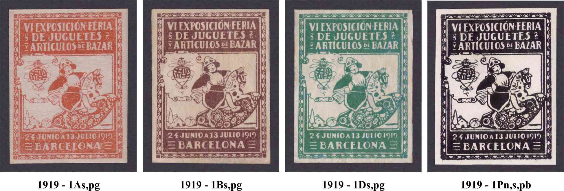 De la primeras, que son bastante difíciles,, decir que basicamente existen en color rojo, castaño y violeta sobre cuatro tipos de papel,, también se conocen pruebas sin dentar en algún color distinto.