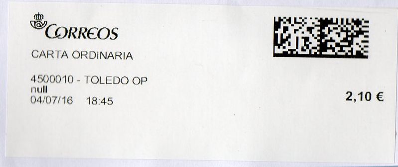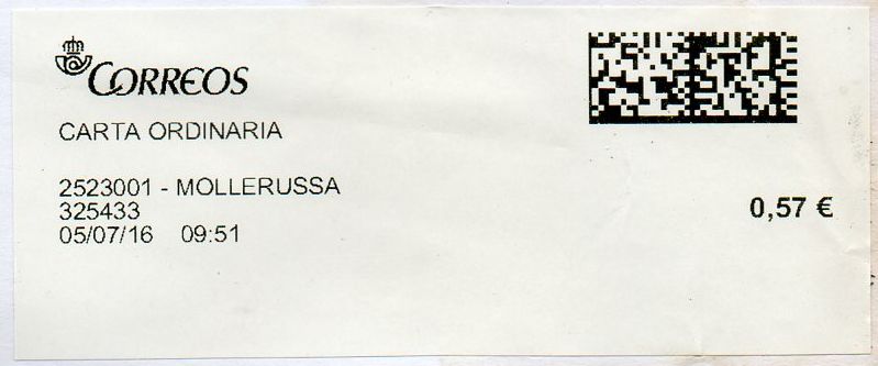 Por cierto, el envío va franqueado con dos etiquetas (ATM) antiguas de 2,95 euros, lo que demuestra (por si alguien tiene alguna duda) que pueden ser usadas todavía. Eso sí, deberían haber sido mataselladas para anularlas.