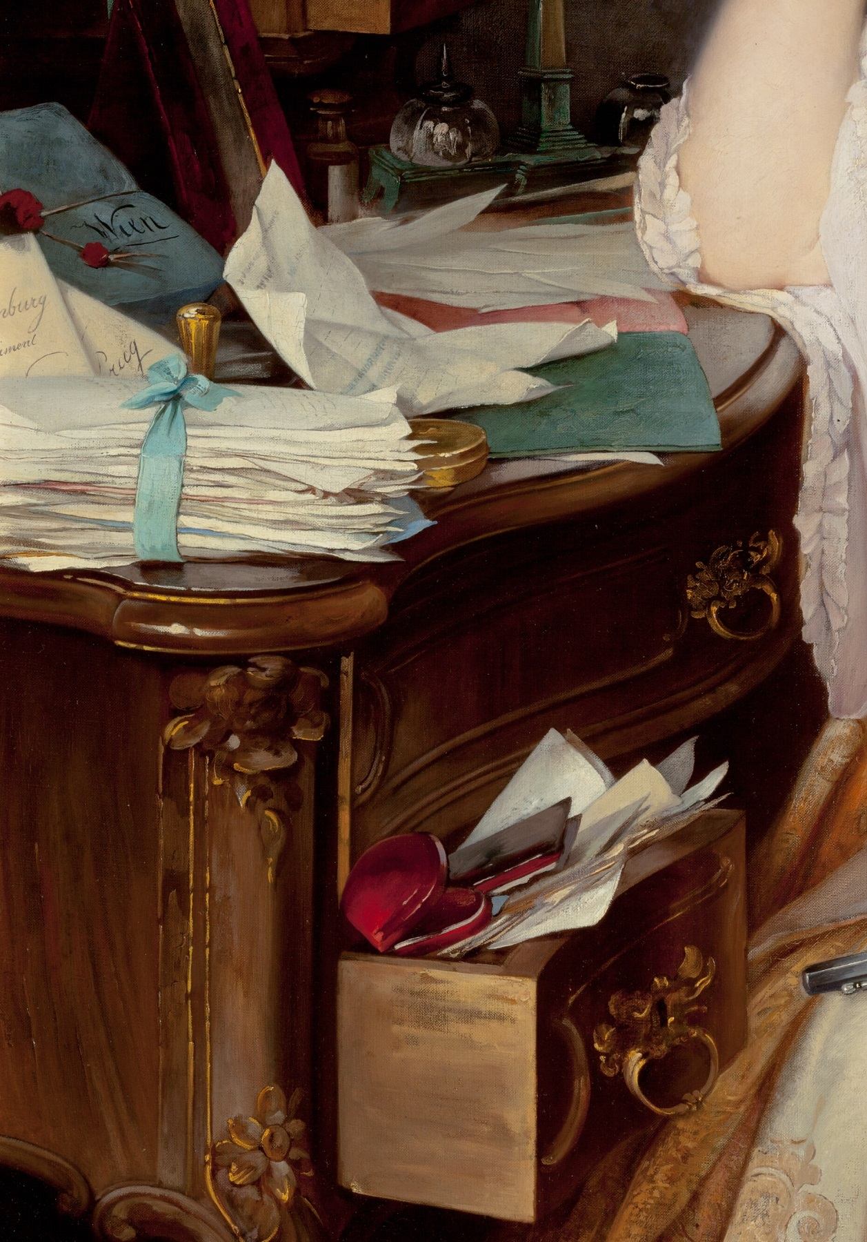Esta es una extraordinaria ambrosía postal, impregnada de belleza y con un gran brío narrativo. El título de esta emotiva pintura es Telegrama (1894), y su autora, Luisa Max-Ehrlerová. Óleo sobre lienzo, 97 x 92 cm