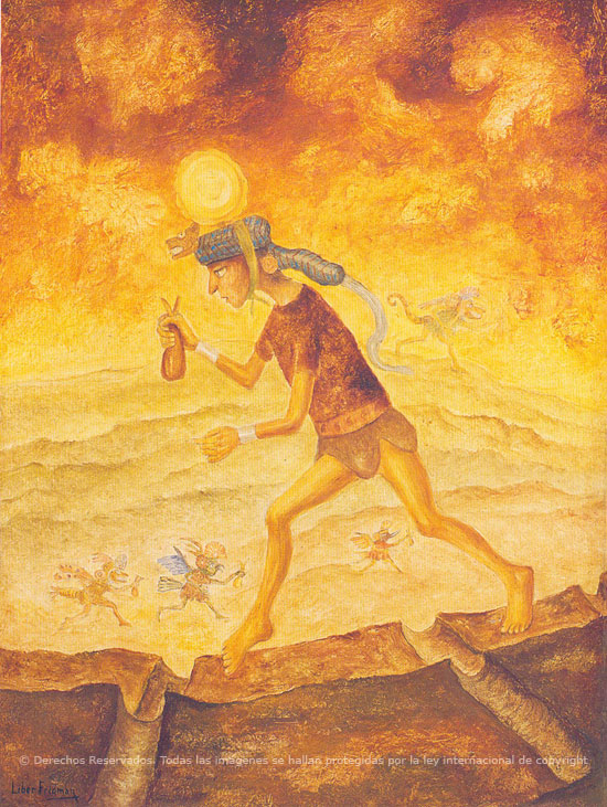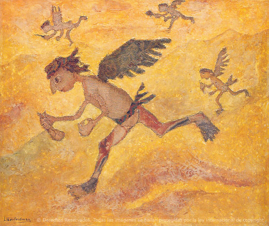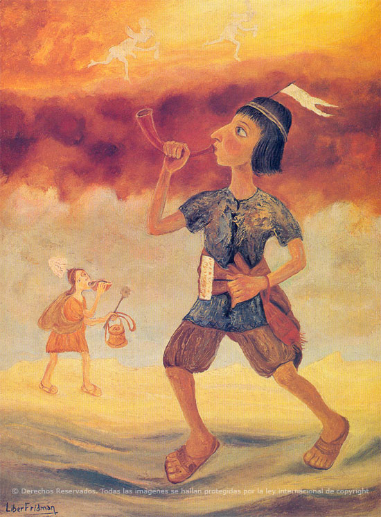 Aunque está claramente inspirado en las ilustraciones de la "Nueva Corónica y Buen Gobierno" de Felipe Guamán Poma de Ayala, estas tres obras del artista argentino Liber Fridman muestran una visión personal de la iconografía chasqui, que bien merece formar parte de esta galería de imágenes extraordinarias que es el hilo de "Ambrosías Postales".