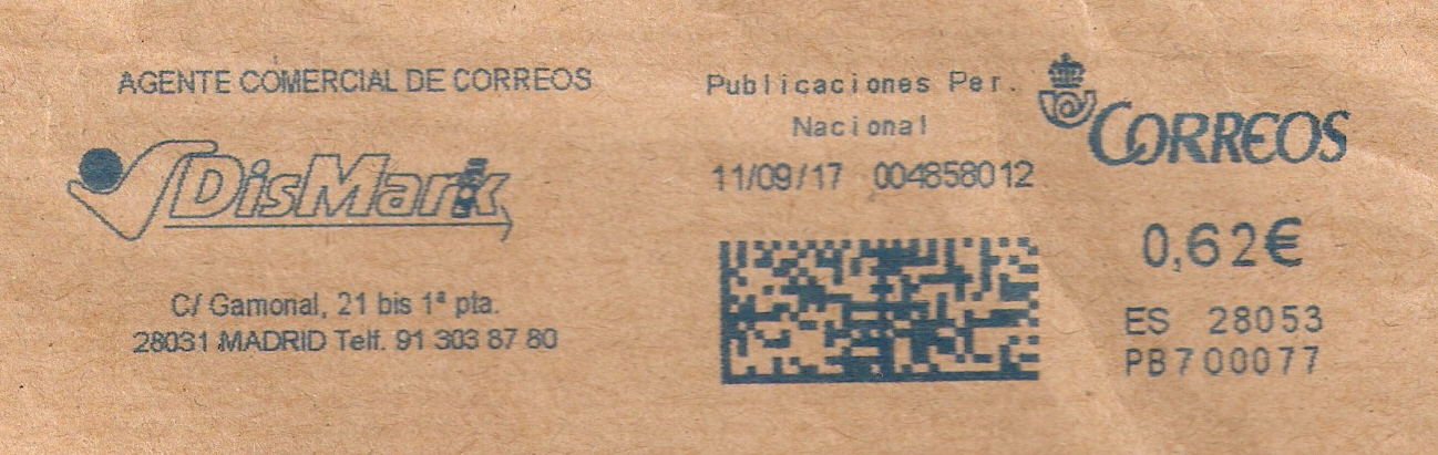 Una impronta que no veía hace tiempo, además del cambio de la relación con Correos, también figura un cambio en la dirección, lo que no puedo afirmar es que ambos cambios sean simultáneos porque entre los repes que tengo no aparece otro con la nueva dirección siendo el más moderno de 2013.
