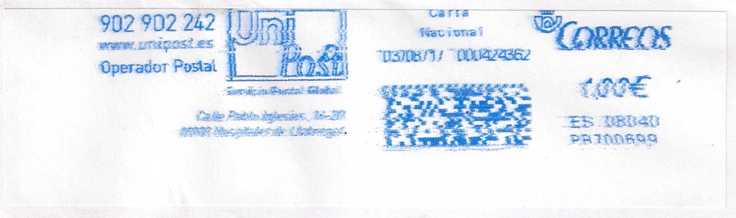 Cambio de relación comercial con Correos de la PB700350. El titular es mavipost y las improntas circularon mudas durante un mes aprox. hasta que se produjo el cambio....que fue en junio.